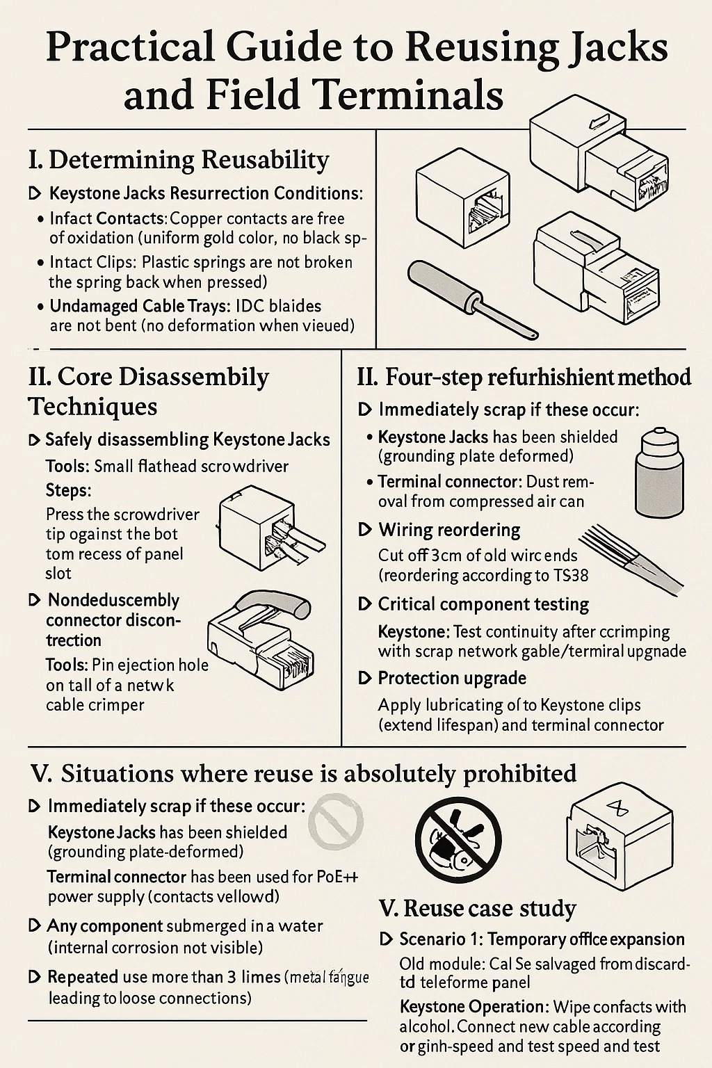 Sean-mhodúl: Tarrtháladh Cat5e ó phainéal gutháin a cuireadh i leataobh Eochairchloch Oibríocht: Scrios na teagmhálacha le halcól. Ceangail cábla nua de réir an chóid dath bunaidh. Ceangail leis an lasc agus luas tástála; má chomhlíonann sé na ceanglais, tá sé réidh le húsáid.