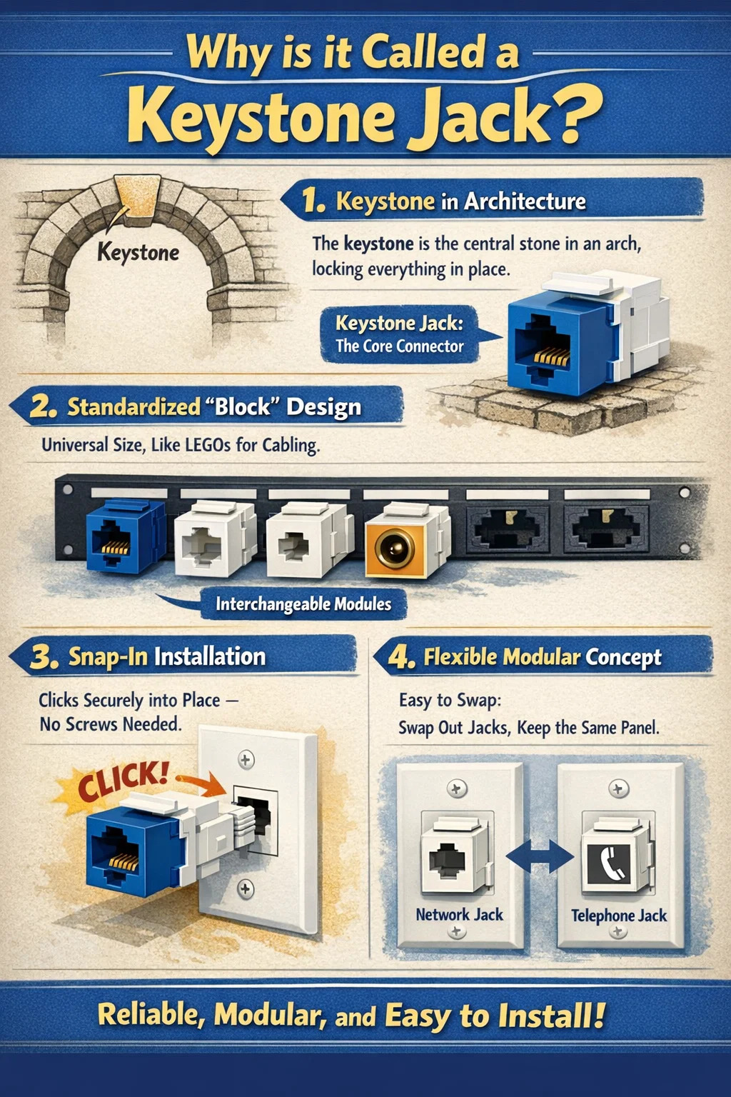 Táirgí líonra a fuarthas ar iasacht an téarma seo go príomha mar gheall ar an Keystone Jack ról comhchosúil i gcórais cáblaithe modúlach: